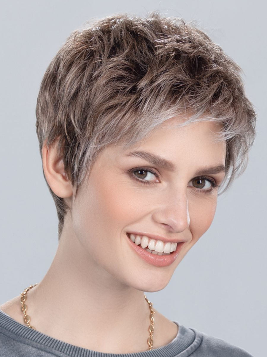 Искусственный парик Ellen Wille CHAT выполнен в стиле короткой стрижки с челкой без пробора. Волнистые волосы создают объем, придают прическе утонченный и элегантный вид. Длина волос около 7 см с боков и 6,5 см в затылочной зоне. Челка объемная, приподнятая чуть выше бровей. Данный тип укладки идеально подходит для лица овальной, треугольной или ромбовидной формы с выраженными скулами. Парик Ellen Wille CHAT универсален в применении, его можно носить ежедневно на работу, прогулку, отдых или занятия спортом. Он с успехом может быть использован для создания вечерних образов.