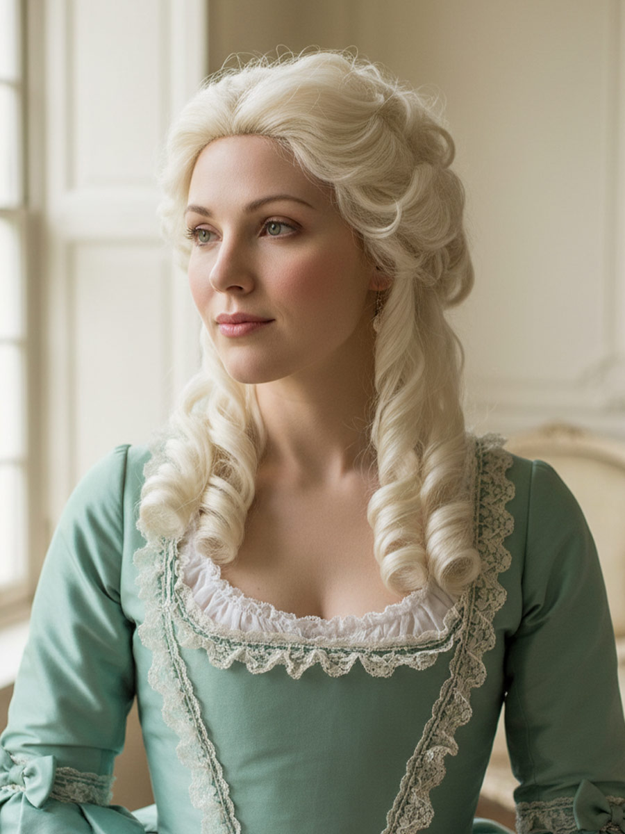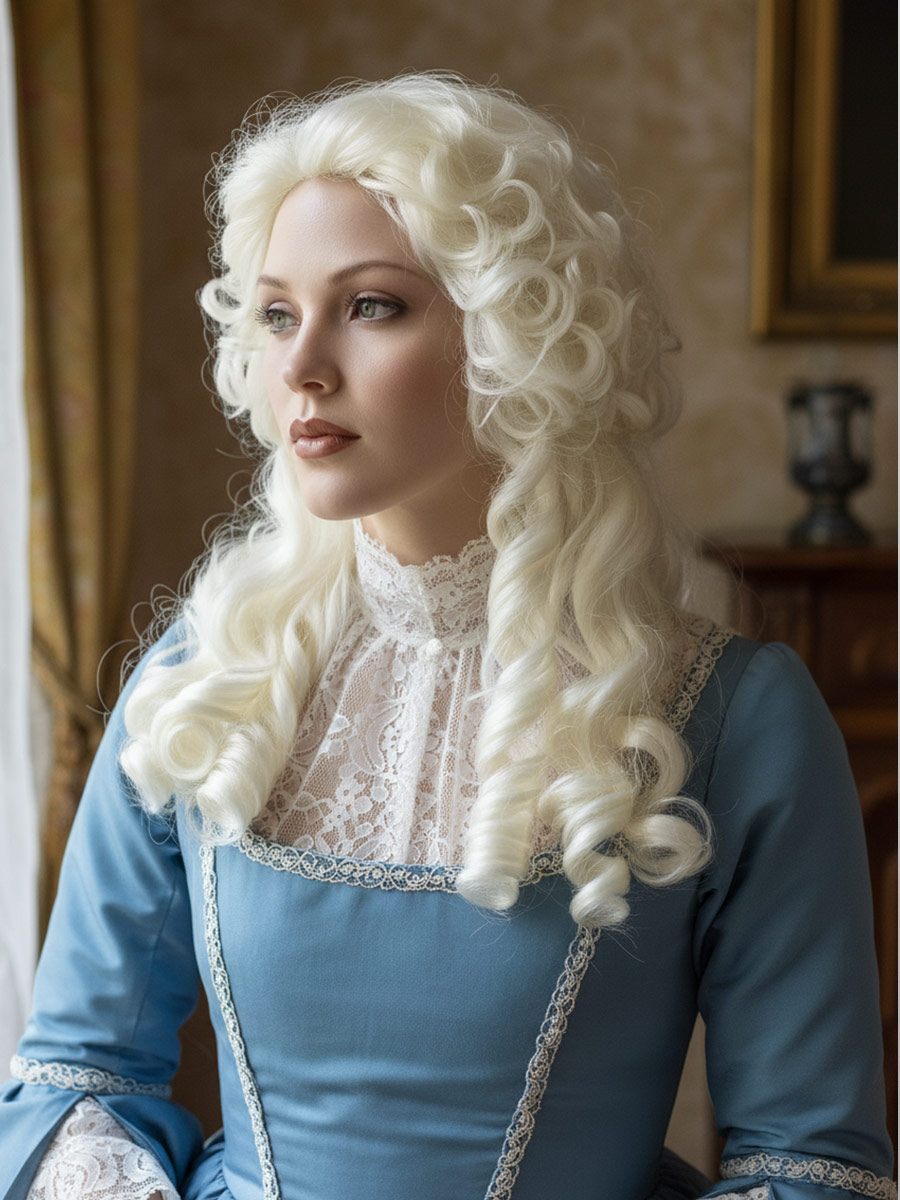 Данный парик используется для создания исторического образа. Парик сохранит свою форму на всем периоде эксплуатации. Парик изготовлен из облегченного синтетического волокна. Шапочка парика изготовлена из тресс ленты. Парик не требует никакой укладки.
