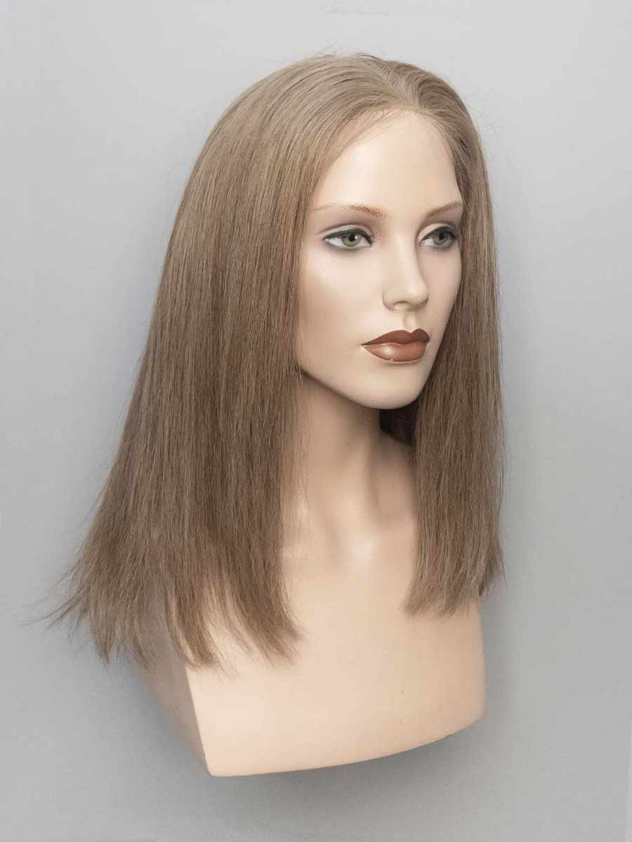 В парике присутствует невидимая фронтальная линия Lace Front, изготовленная вручную. Мягкий Lace Front, при необходимости, можно аккуратно подрезать и создать необходимую для Вас форму края роста волос. Данная особенность дает возможность открыть лоб или поднять челку, сохраняя ощущение естественного роста волос. Благодаря Lace Front, парик становится намного более удобным в эксплуатации.