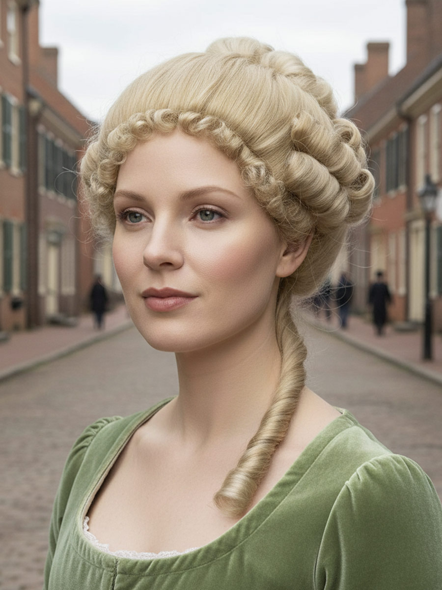 Данный парик используется для создания исторического образа. Парик сохранит свою форму на всем периоде эксплуатации. Парик изготовлен из облегченного синтетического волокна. Шапочка парика изготовлена из тресс ленты. Парик не требует никакой укладки.