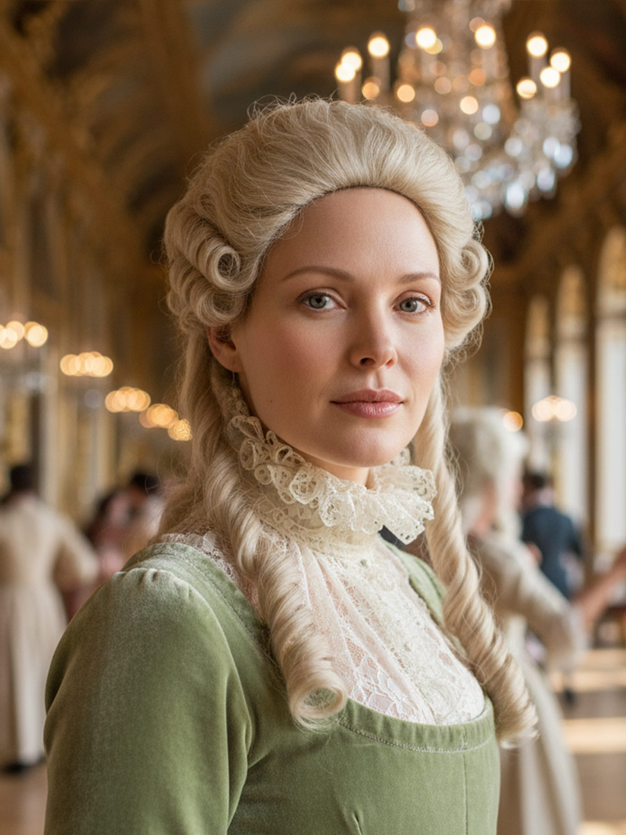 Данный парик используется для создания исторического образа. Парик сохранит свою форму на всем периоде эксплуатации. Парик изготовлен из облегченного синтетического волокна. Шапочка парика изготовлена из тресс ленты. Парик не требует никакой укладки.