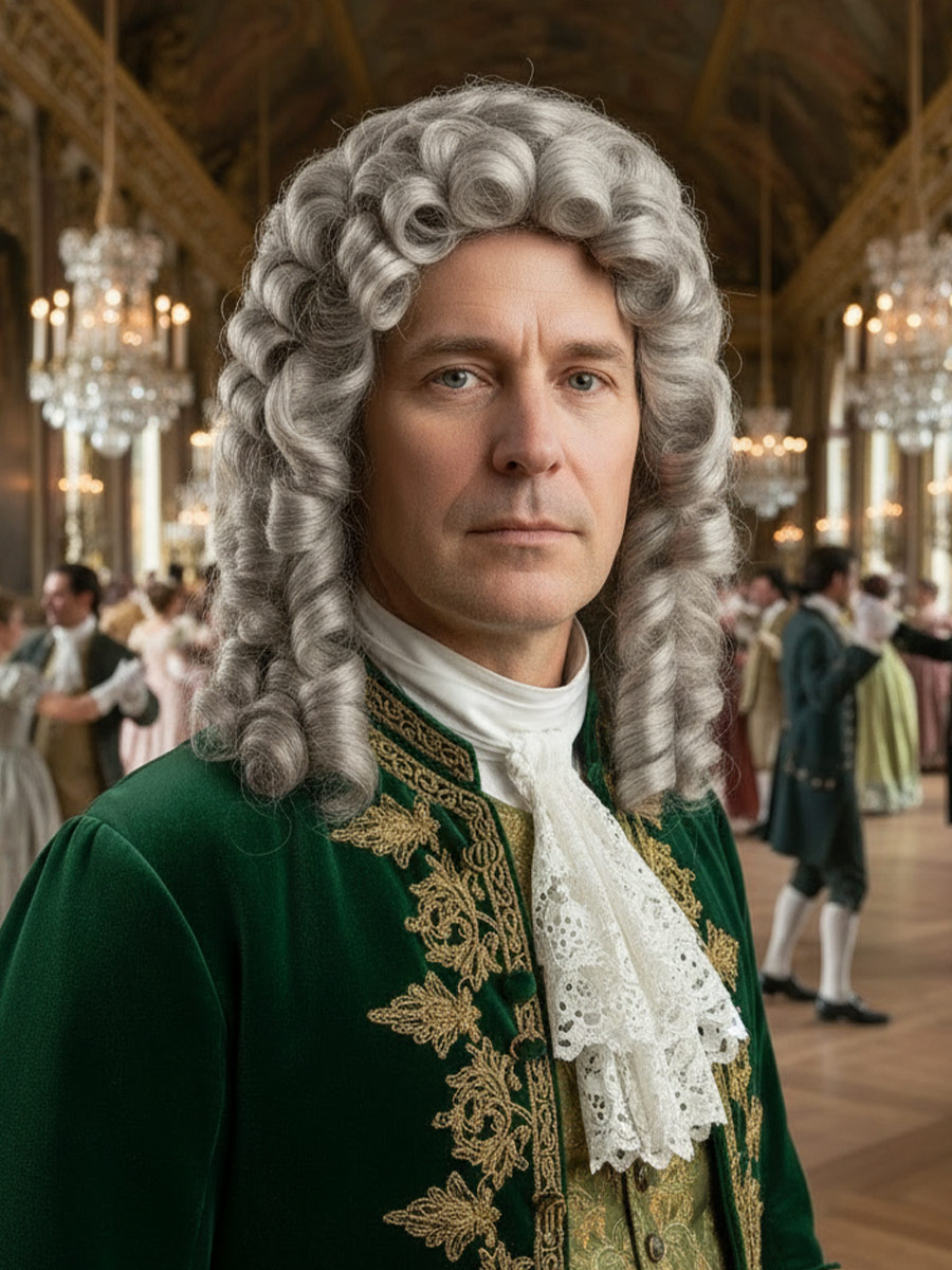 Данный парик используется для создания исторического образа. Парик сохранит свою форму на всем периоде эксплуатации. Парик изготовлен из облегченного синтетического волокна. Шапочка парика изготовлена из тресс ленты. Парик не требует никакой укладки.
