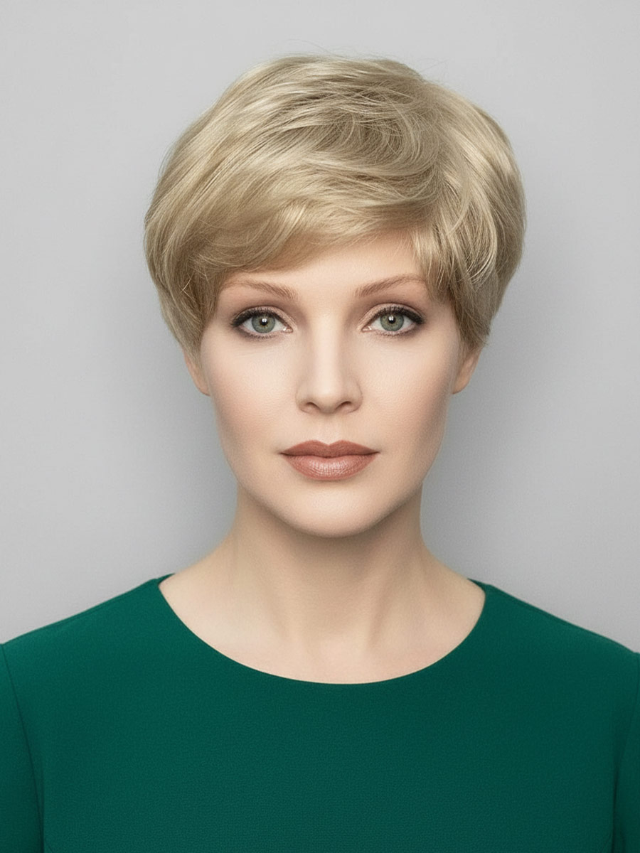 Данный парик используется как для повседневной носки так и для создания образа. Стрижка сохранит свою форму на всем периоде эксплуатации. Парик эконом класса, изготовлен из облегченного синтетического волокна. Шапочка парика изготовлена из тресс ленты. Парик не требует никакой укладки. Парик можно смело расчесывать. В данной модели нет определенного места для пробора. Прическу можно создать, причесав волосы как на левую, так и на правую стороны. Данная модель является классической, аккуратной стрижкой.