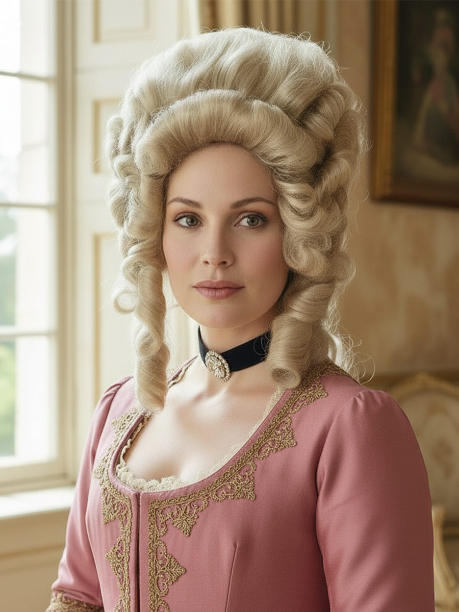 Данный парик используется для создания исторического образа. Парик сохранит свою форму на всем периоде эксплуатации. Парик изготовлен из облегченного синтетического волокна. Шапочка парика изготовлена из тресс ленты. Парик не требует никакой укладки.