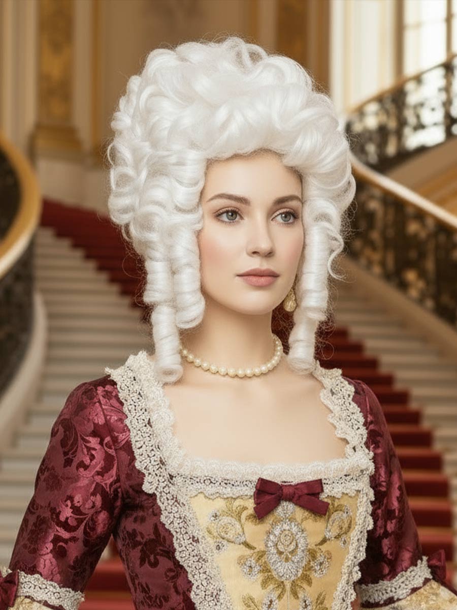 Данный парик используется для создания исторического образа. Парик сохранит свою форму на всем периоде эксплуатации. Парик изготовлен из облегченного синтетического волокна. Шапочка парика изготовлена из тресс ленты. Парик не требует никакой укладки.