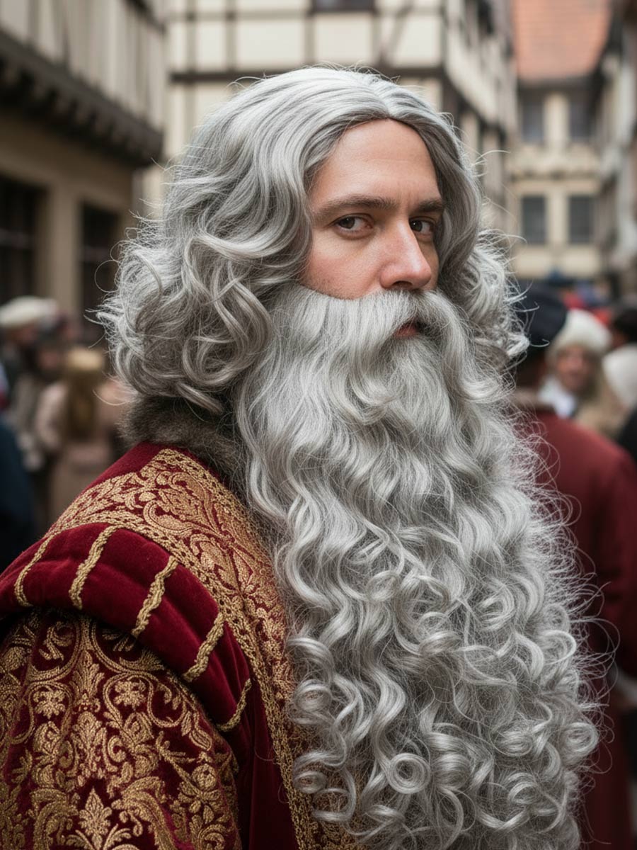 Данный парик используется для создания исторического образа. Парик сохранит свою форму на всем периоде эксплуатации. Парик изготовлен из облегченного синтетического волокна. Шапочка парика изготовлена из тресс ленты. Парик не требует никакой укладки.