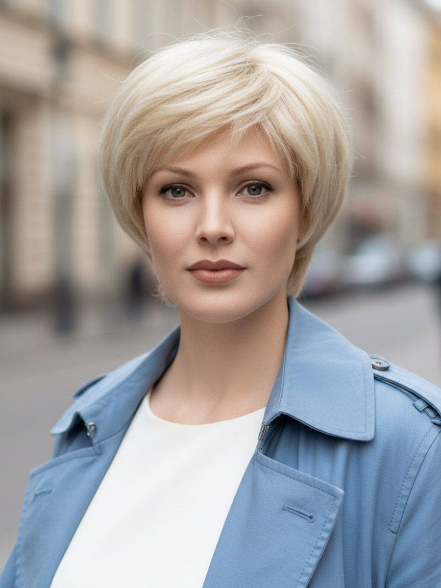 Данный парик используется как для повседневной носки так и для создания образа. Стрижка сохранит свою форму на всем периоде эксплуатации. Парик эконом класса, изготовлен из облегченного синтетического волокна. Шапочка парика изготовлена из тресс ленты. Парик не требует никакой укладки. Парик можно смело расчесывать. В данной модели нет определенного места для пробора. Прическу можно создать, причесав волосы как на левую, так и на правую стороны. Данная модель является градуированной стрижкой.